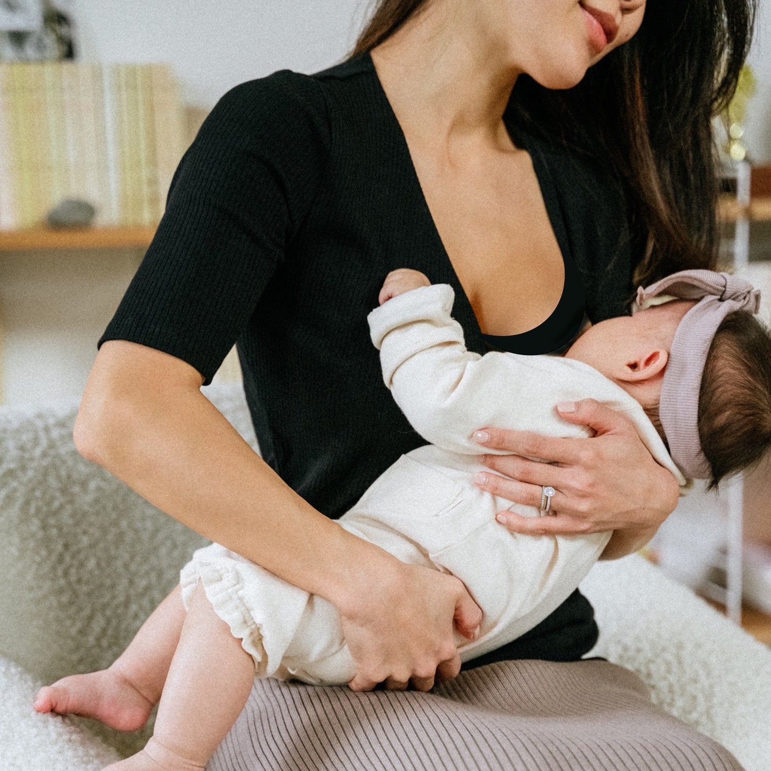 Babywearing is also known to be an advantage when breastfeeding , both for the baby and the mother. Carried in a sling, the child is in an optimal position that helps him latch on. The carrying position also stimulates the mother's milk supply.