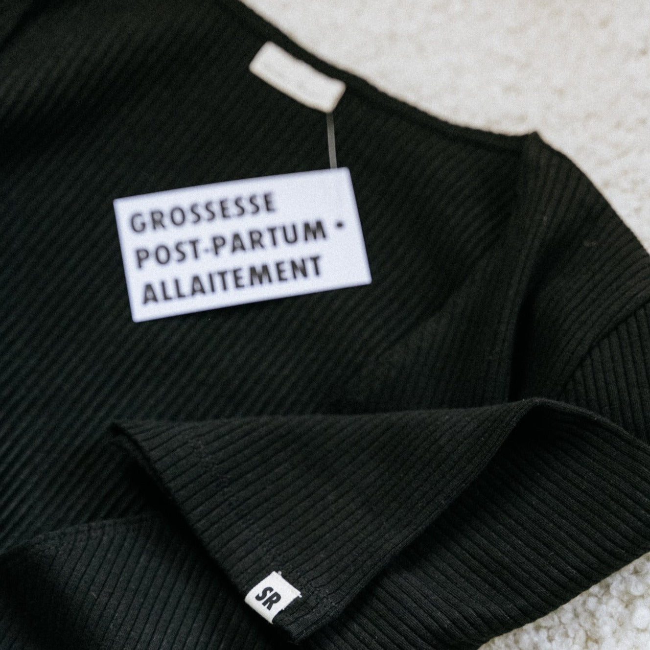 Studio Romeo launches a maternity capsule for pregnant and postpartum women! This t-shirt can be worn throughout pregnancy and even after thanks to its wrap-over opening that allows you to breastfeed easily. A new must-have that combines comfort and femininity.