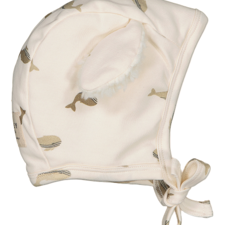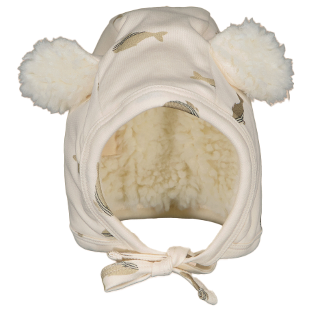 Dive into a world of softness with this beanie with whale patterns straight out of a story. And for even more softness, you can count on its little furry ears and its sheepskin lining that keeps baby warm in all circumstances.