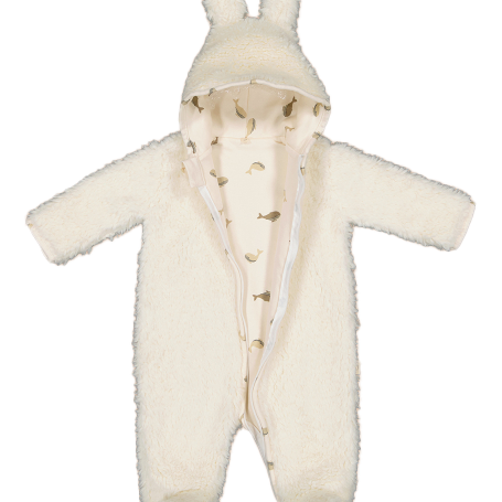 With its sheepskin exterior and thermoregulating lining with a whale pattern, it keeps baby nice and warm (but not too much!). The aim of this suit is precisely to ensure that your baby is at the ideal temperature from head to toe the entire time he or she is wearing it.