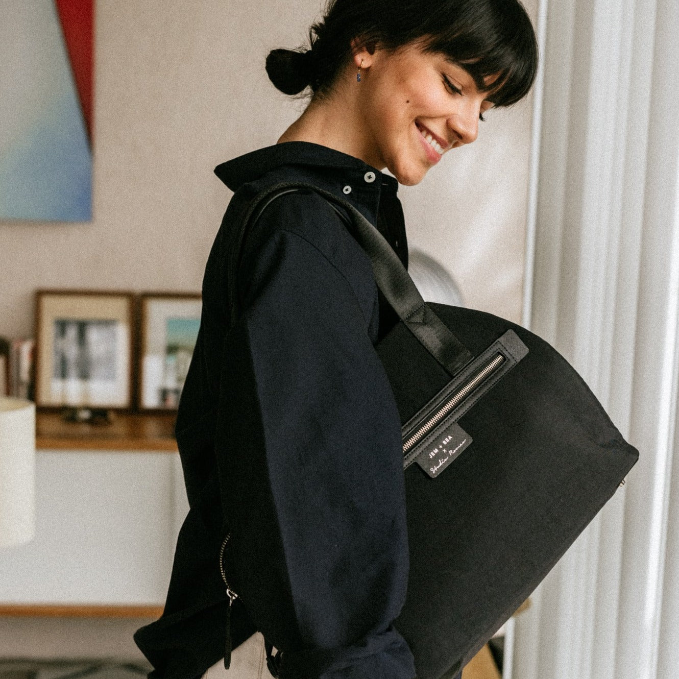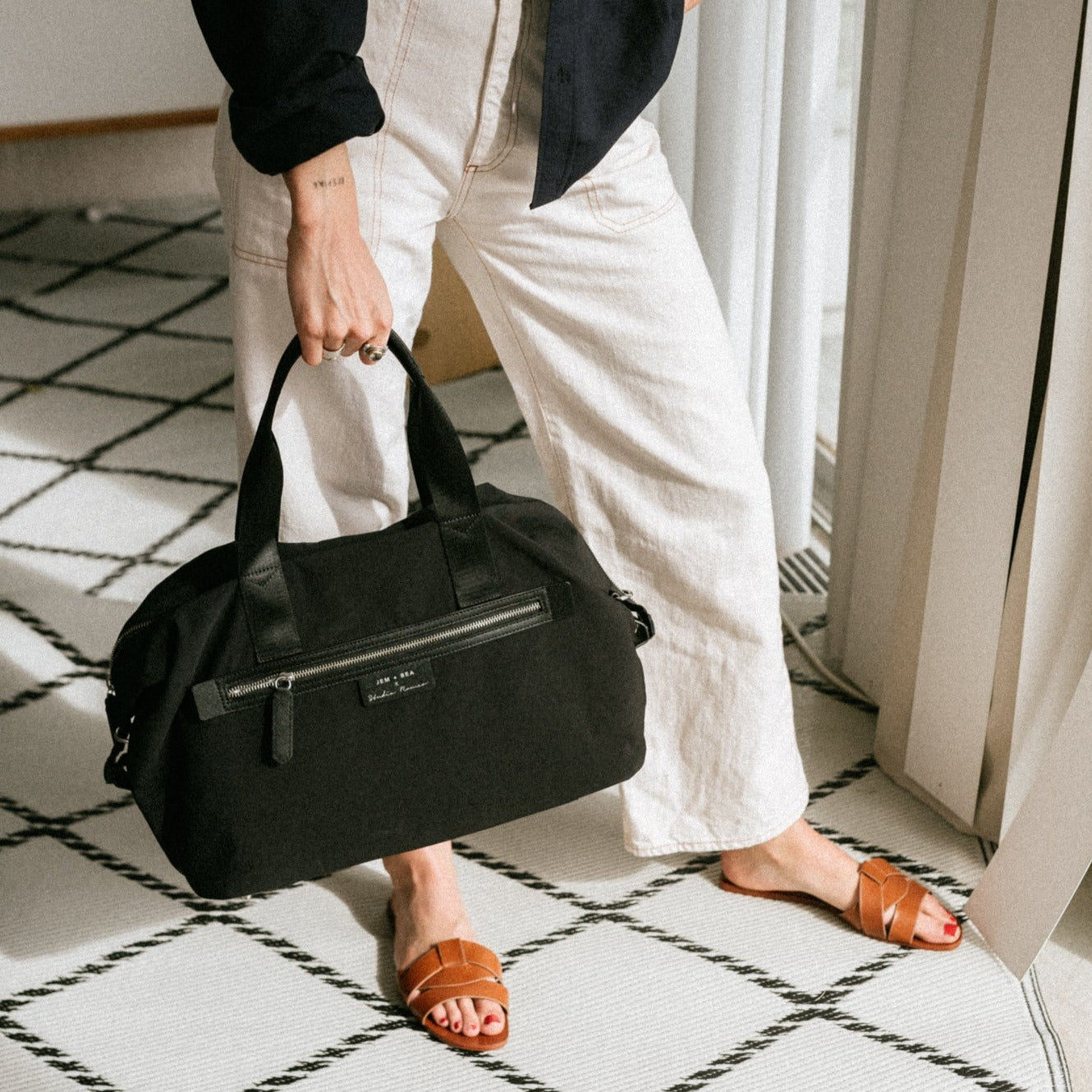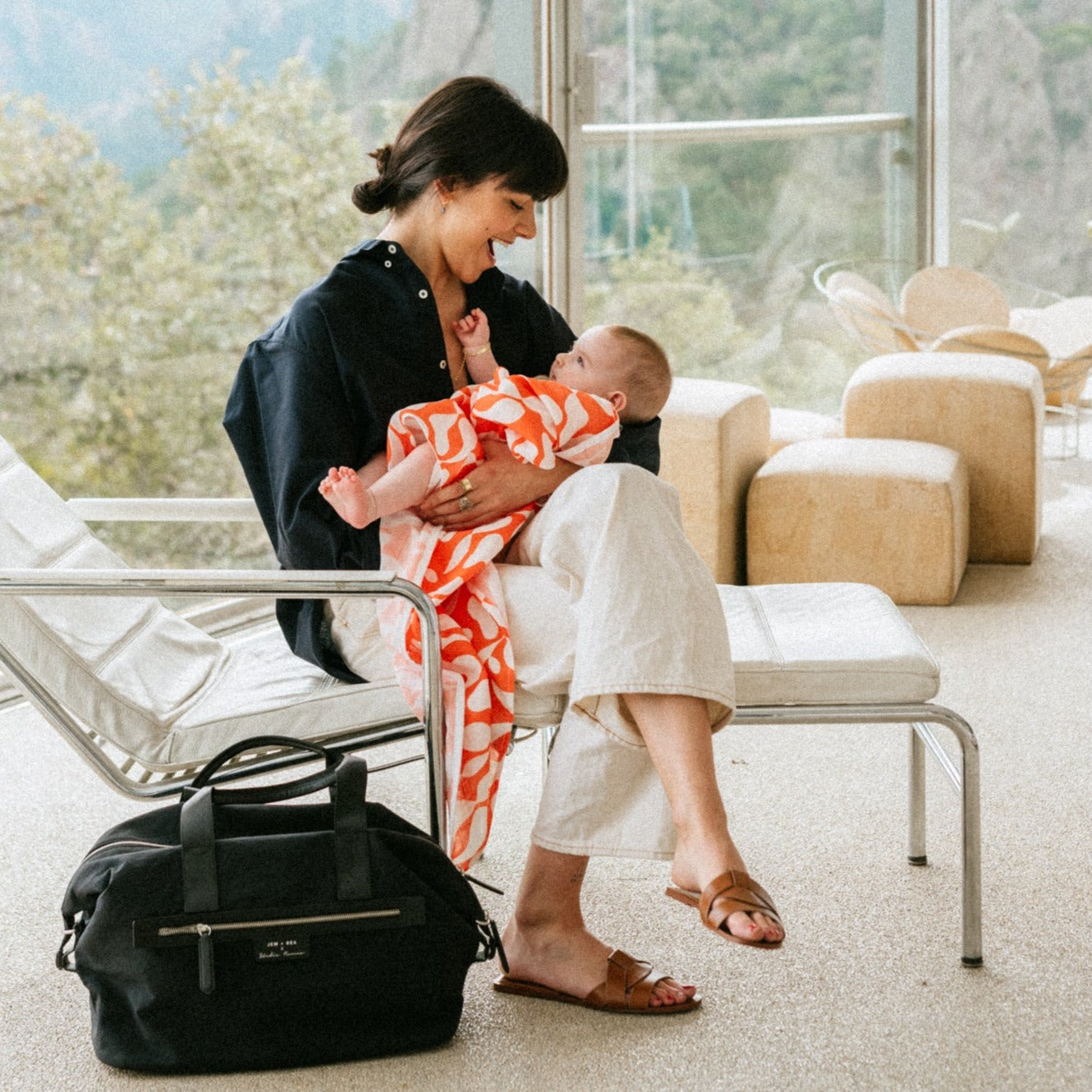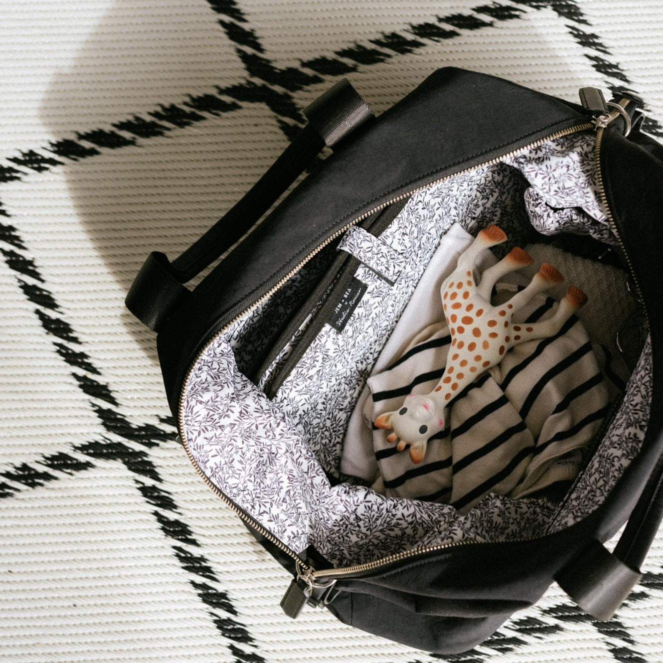 Halfway between a classic handbag and a weekender, this changing bag allows you to store baby's essentials in a sober and casual-chic style. Very practical, with its many compartments and accessories, it will be ideal for all your trips - with or without baby. The little extra: the matching changing mat is included!