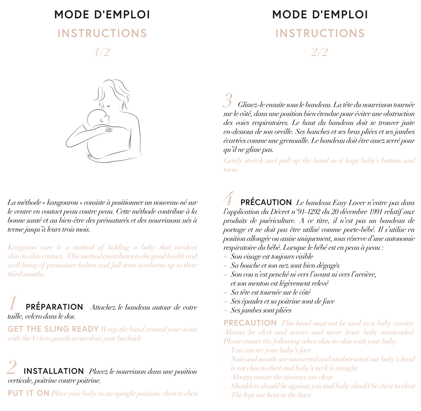 THE “KANGAROO CARE” METHOD CONSISTS OF POSITIONING A NEWBORN ON THE STOMACH IN SKIN-TO-SKIN CONTACT . THIS METHOD CONTRIBUTES TO THE GOOD HEALTH AND WELL-BEING OF PREMATURE AND FULL-TERM INFANTS UP TO THEIR THREE MONTHS.