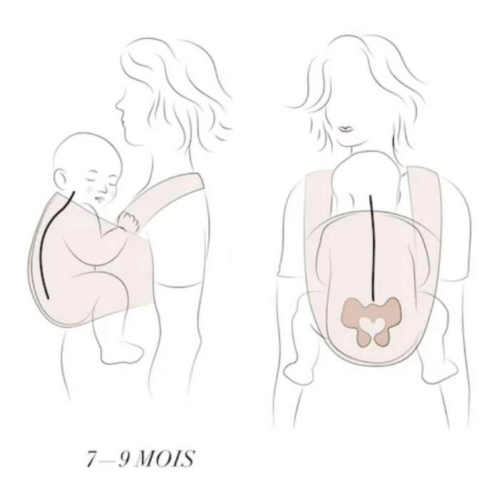 The hip position is an additional carry for babies from 7 kg (6 months minimum).